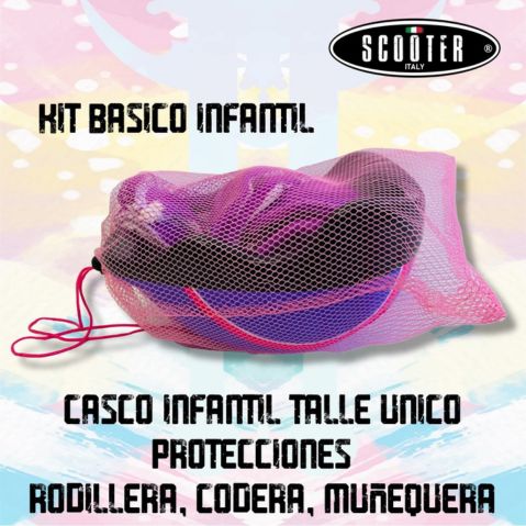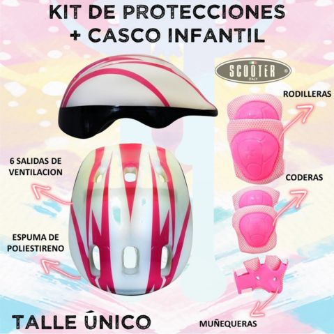 Este kit básico de casco y protecciones infantiles es ideal para dar los primeros pasos en monopatín, rollers, skate o patines.
