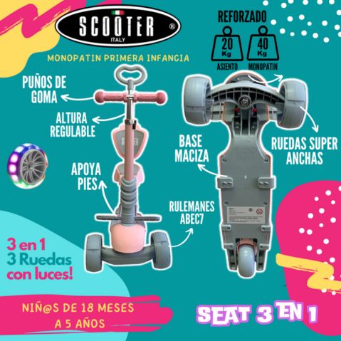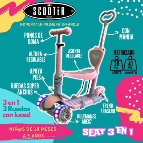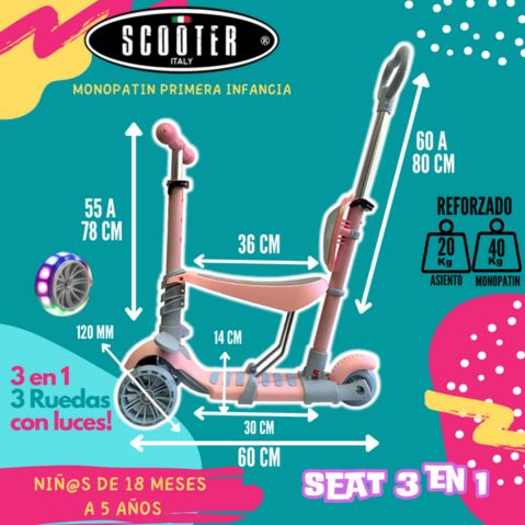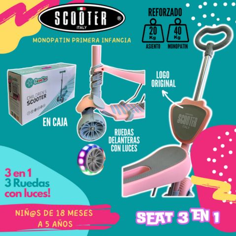 Monopatin Infantil 3 En 1 Scooter Italy Asiento Manija Bebe – ROSA PASTEL