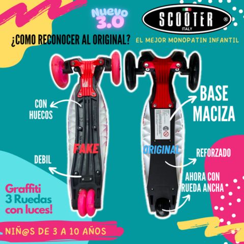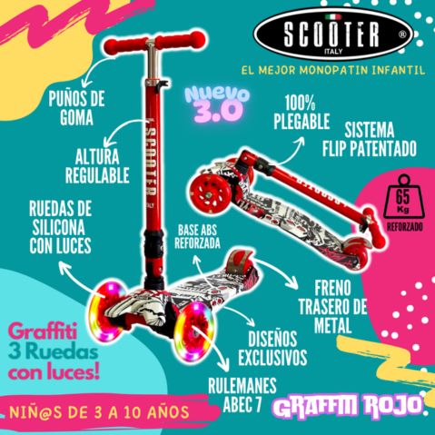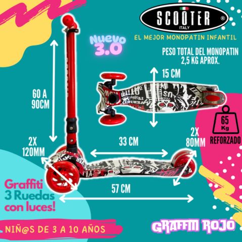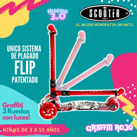 Monopatin Graffiti 3 Ruedas Luces Grande Original Plegable – ROJO