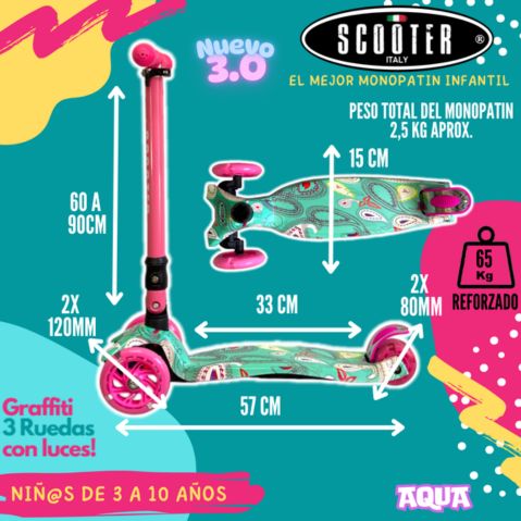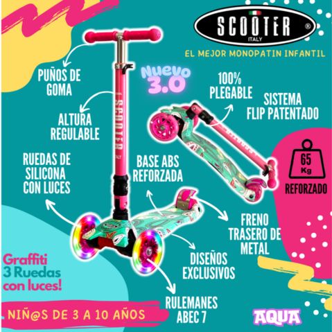 Monopatin Graffiti 3 Ruedas Luces Grande Original Plegable – AQUA