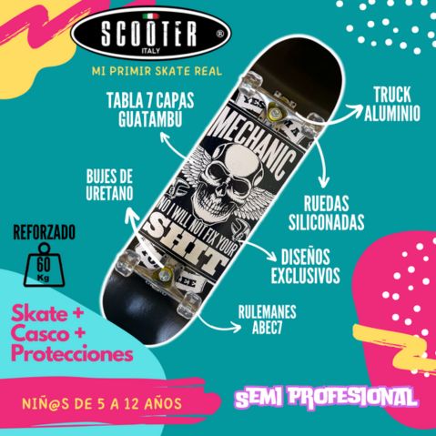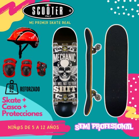 Skate Completo Semi Profesional Scooter Madera + Casco + Protecciones + Bolso – TIRON